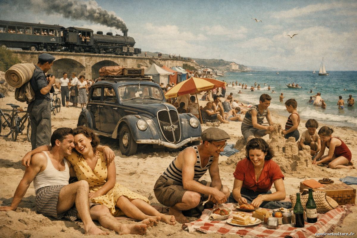 L’apparition des congés payés change bien davantage que l’organisation des entreprises. Elle transforme les rythmes sociaux. Les vacances d’été deviennent un temps collectif, structurant la vie du pays. Les gares se remplissent, les stations balnéaires se développent, le camping se démocratise, les colonies de vacances se multiplient.